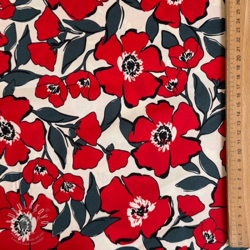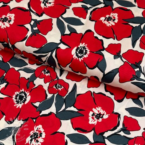 Pamutvászon SATIN Flower Kala offwhite