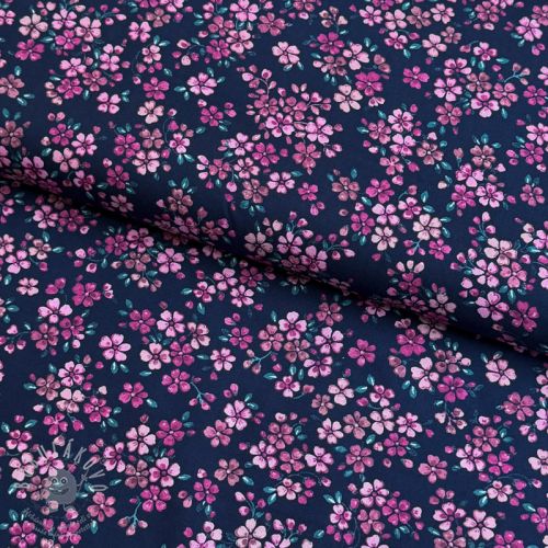 Pamutvászon Simie flowers navy digital print