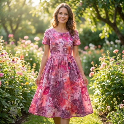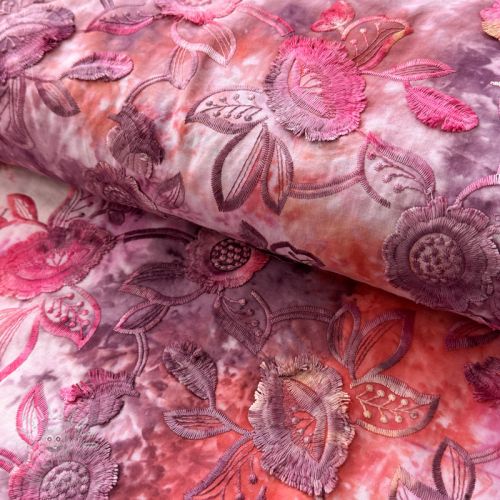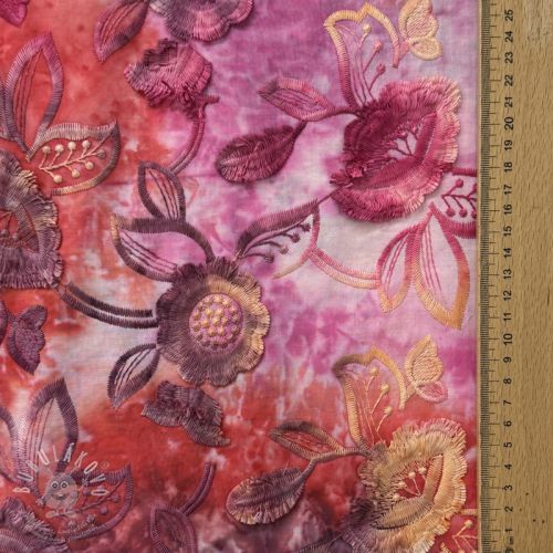 Pamutvászon TIE DYE EMBROIDERY Flora design D