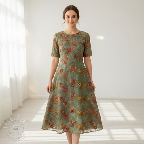 Pamutvászon TIE DYE EMBROIDERY Poppy design K