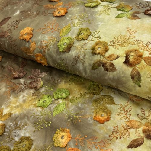 Pamutvászon TIE DYE EMBROIDERY Poppy design K