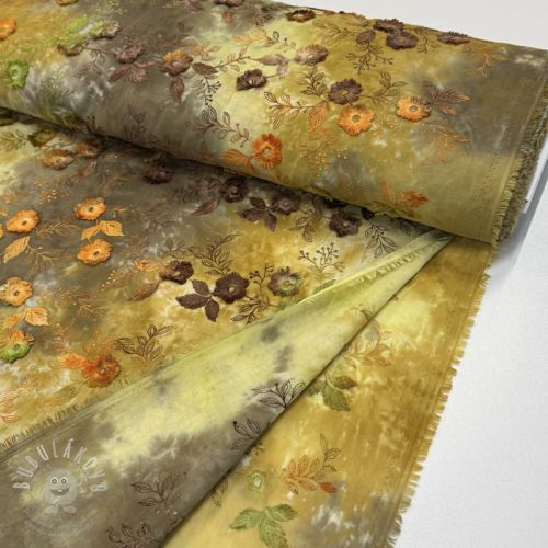 Pamutvászon TIE DYE EMBROIDERY Poppy design J