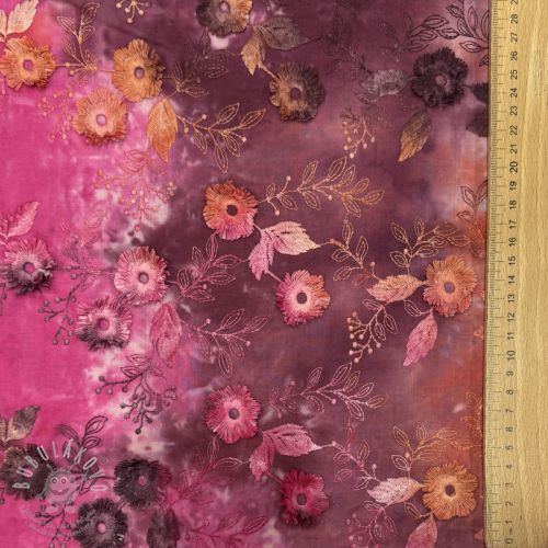Pamutvászon TIE DYE EMBROIDERY Poppy design J