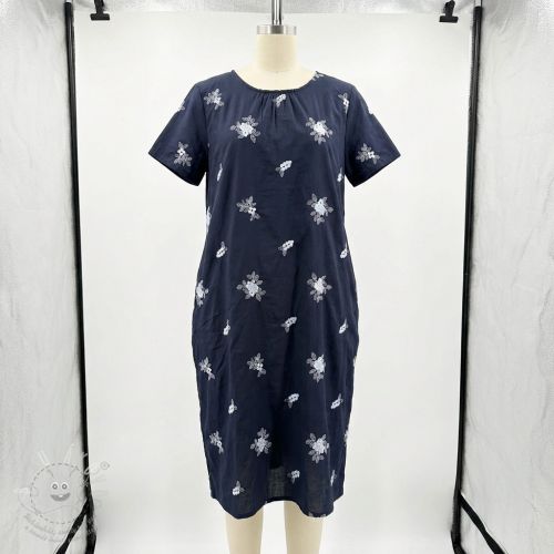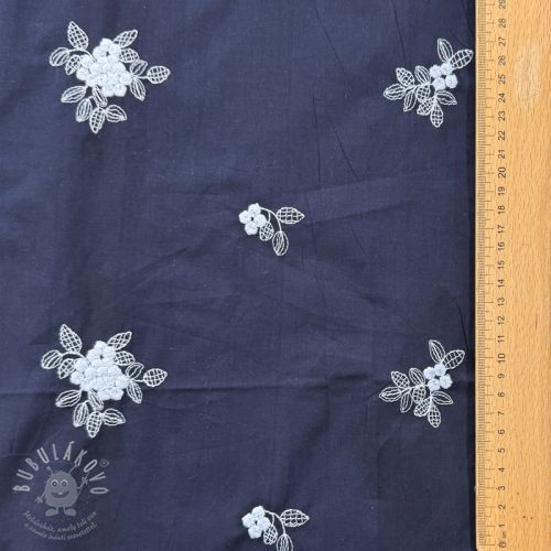 Pamutvászon VOILE EMBROIDERY Flowers navy