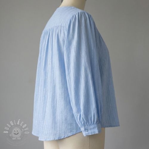 Pamutvászon VOILE LUREX Stripes light blue