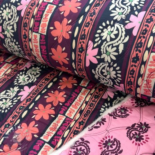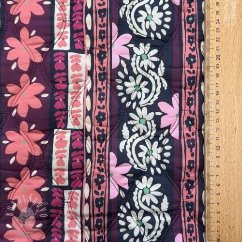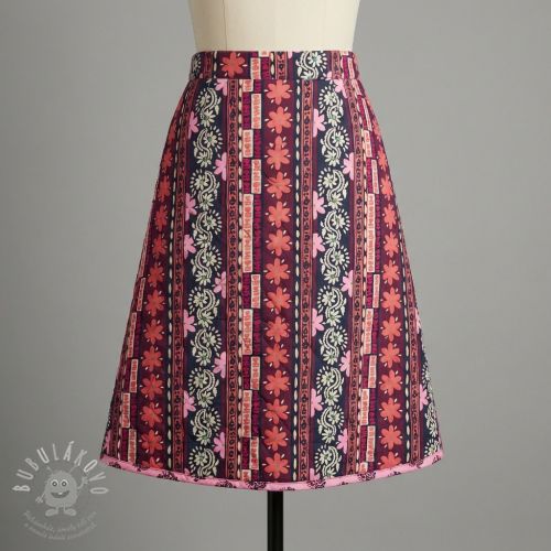Pamutvászon VOILE STEPPED Daria flower aubergine digital print