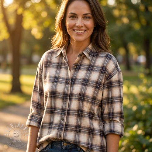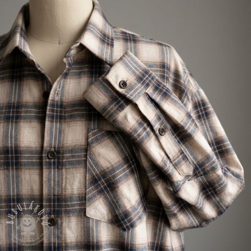 Pamutvászon YARN DYED BRUSHED Check Tim beige