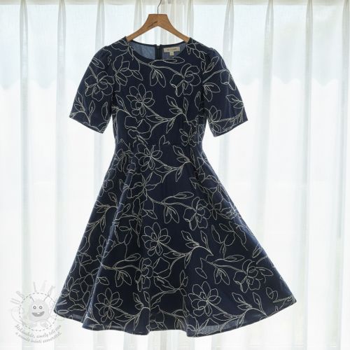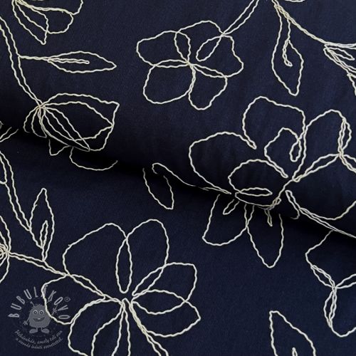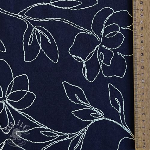 Viszkóz lenvászonnal EMBROIDERY Flower Danielle navy