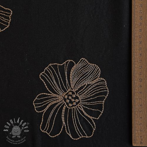 Viszkóz lenvászonnal EMBROIDERY Flower Maya black