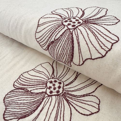 Viszkóz lenvászonnal EMBROIDERY Flower Maya natural