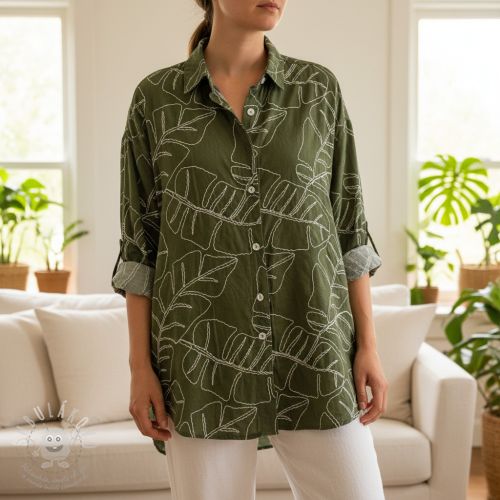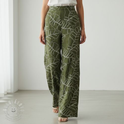 Viszkóz lenvászonnal EMBROIDERY Leaves forest green