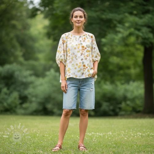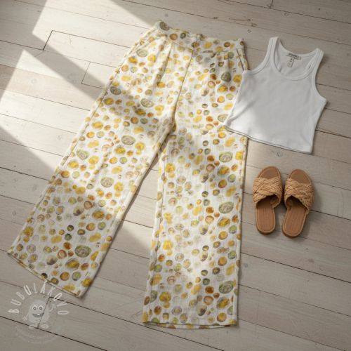 Viszkóz lenvászonnal Natural Livy yellow digital print