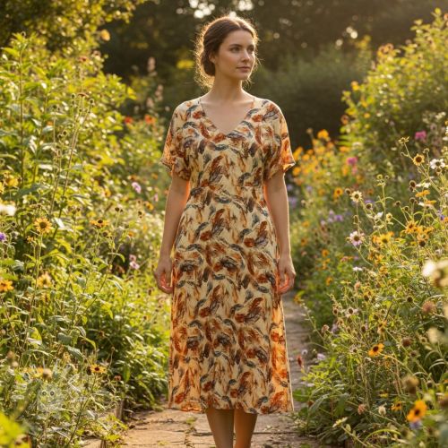 Viszkóz RAYON POPLIN Feathers design C digital print